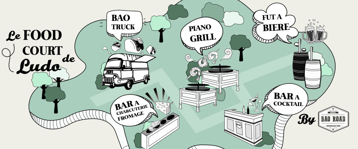 Ces modules sont des ateliers regroupant notre BaoTruck avec notre Estafette de 1978, notre Piano Grill BBQ, notre bar à charcuterie et fromage, notre bar à cocktail, mais aussi nos futs à bière vintage.